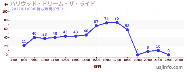• ハリウッド・ドリーム・ザ・ライド$B$N(B2022年01月08日の待ち時間