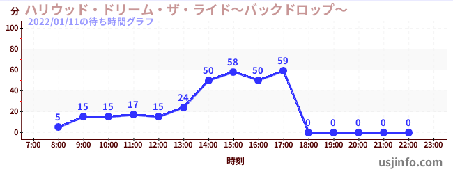 • ハリウッド・ドリーム・ザ・ライド〜バックドロップ〜$B$N(B2022年01月11日の待ち時間