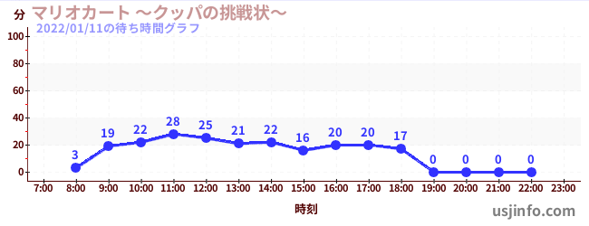 • マリオカート ~クッパの挑戦状~$B$N(B2022年01月11日の待ち時間