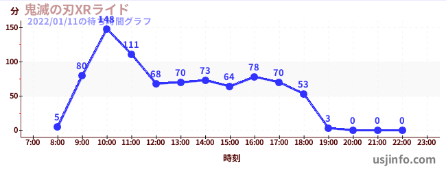 • 鬼滅の刃XRライド$B$N(B2022年01月11日の待ち時間