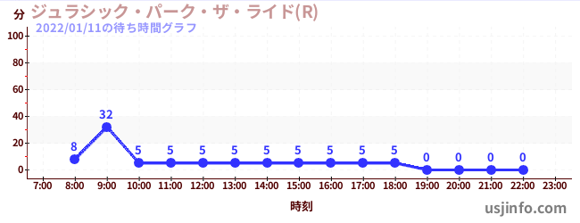 • ジュラシック・パーク・ザ・ライド(R)$B$N(B2022年01月11日の待ち時間
