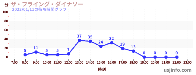 • ザ・フライング・ダイナソー$B$N(B2022年01月11日の待ち時間