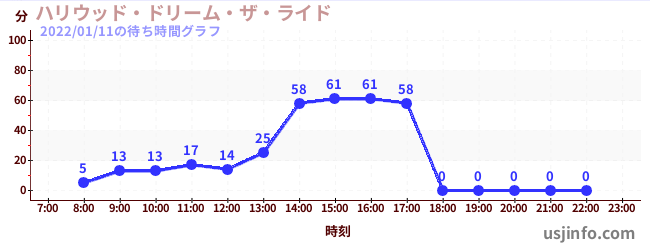 • ハリウッド・ドリーム・ザ・ライド$B$N(B2022年01月11日の待ち時間