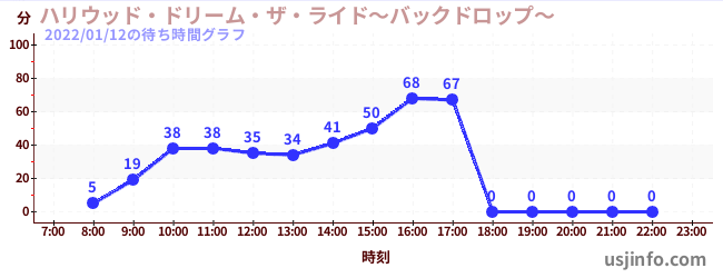 • ハリウッド・ドリーム・ザ・ライド〜バックドロップ〜$B$N(B2022年01月12日の待ち時間