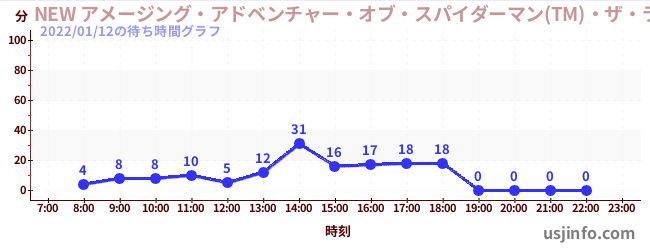 • NEW アメージング・アドベンチャー・オブ・スパイダーマン(TM)・ザ・ライド 4K3D$B$N(B2022年01月12日の待ち時間