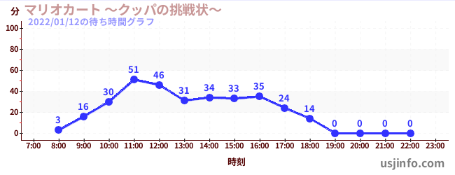 • マリオカート ~クッパの挑戦状~$B$N(B2022年01月12日の待ち時間