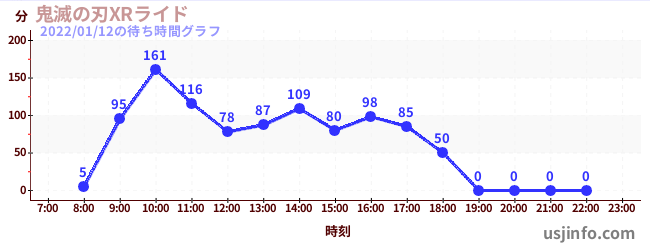• 鬼滅の刃XRライド$B$N(B2022年01月12日の待ち時間