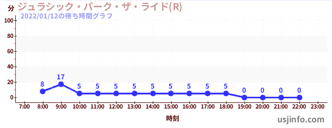 • ジュラシック・パーク・ザ・ライド(R)$B$N(B2022年01月12日の待ち時間