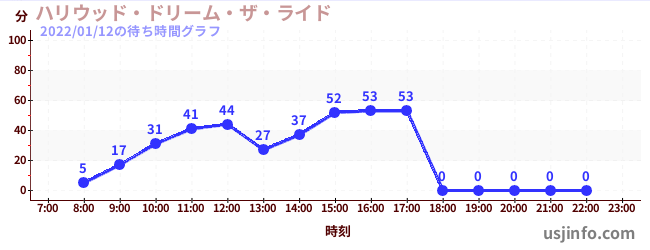 • ハリウッド・ドリーム・ザ・ライド$B$N(B2022年01月12日の待ち時間