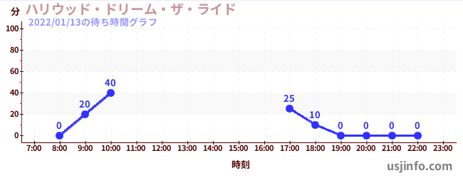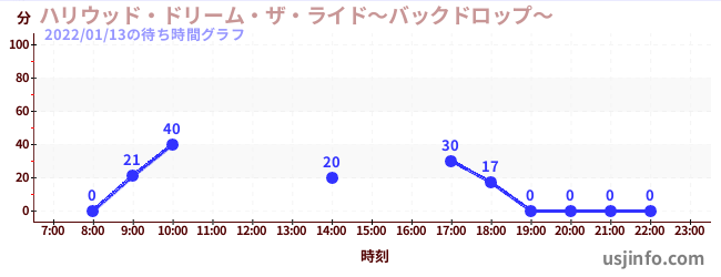 • ハリウッド・ドリーム・ザ・ライド〜バックドロップ〜$B$N(B2022年01月13日の待ち時間