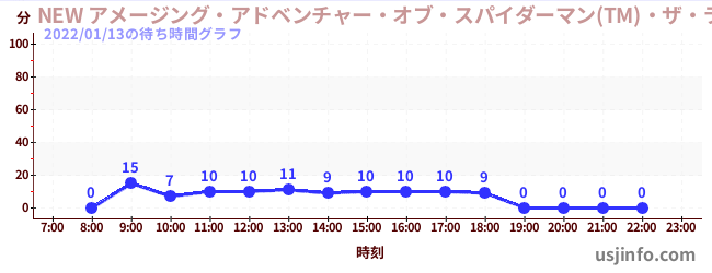 • NEW アメージング・アドベンチャー・オブ・スパイダーマン(TM)・ザ・ライド 4K3D$B$N(B2022年01月13日の待ち時間
