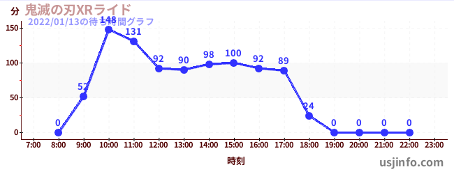 • 鬼滅の刃XRライド$B$N(B2022年01月13日の待ち時間