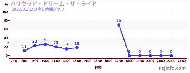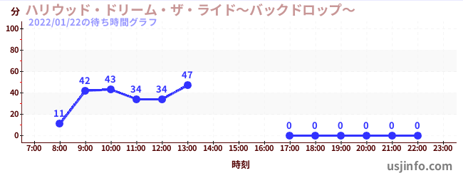• ハリウッド・ドリーム・ザ・ライド〜バックドロップ〜$B$N(B2022年01月22日の待ち時間