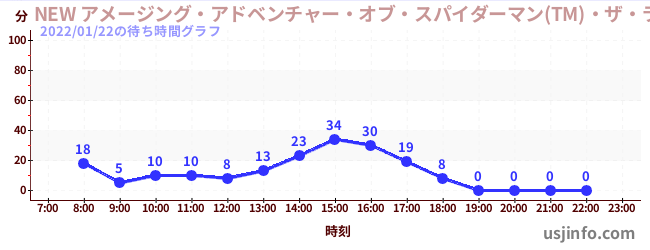 • NEW アメージング・アドベンチャー・オブ・スパイダーマン(TM)・ザ・ライド 4K3D$B$N(B2022年01月22日の待ち時間