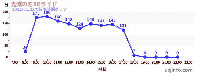 • 鬼滅の刃XRライド$B$N(B2022年01月22日の待ち時間