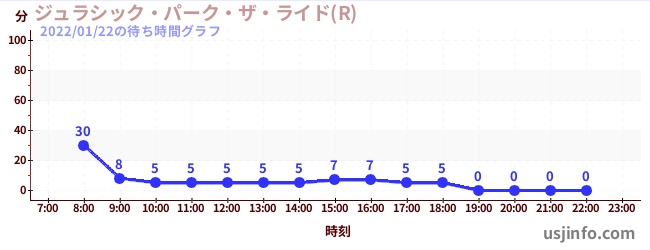 • ジュラシック・パーク・ザ・ライド(R)$B$N(B2022年01月22日の待ち時間