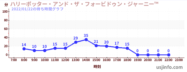 • ハリーポッター・アンド・ザ・フォービドゥン・ジャーニー™$B$N(B2022年01月22日の待ち時間