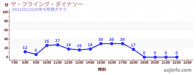 • ザ・フライング・ダイナソー$B$N(B2022年01月22日の待ち時間