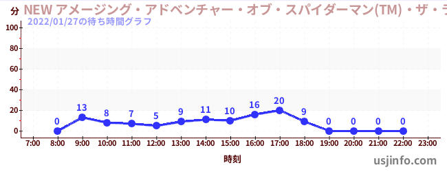• NEW アメージング・アドベンチャー・オブ・スパイダーマン(TM)・ザ・ライド 4K3D$B$N(B2022年01月27日の待ち時間