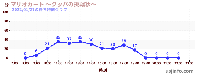 • マリオカート ~クッパの挑戦状~$B$N(B2022年01月27日の待ち時間