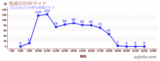 • 鬼滅の刃XRライド$B$N(B2022年01月27日の待ち時間