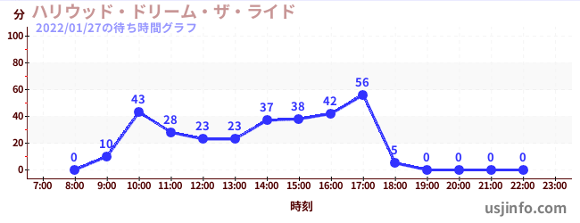 • ハリウッド・ドリーム・ザ・ライド$B$N(B2022年01月27日の待ち時間