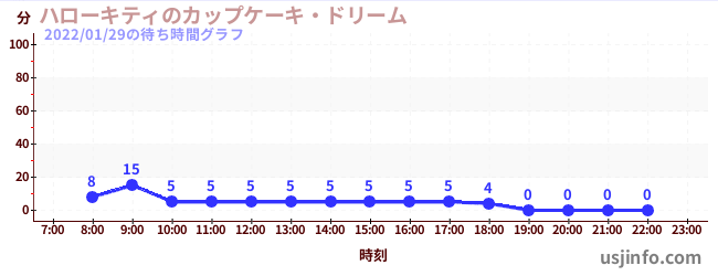 • ハローキティのカップケーキ・ドリーム$B$N(B2022年01月29日の待ち時間