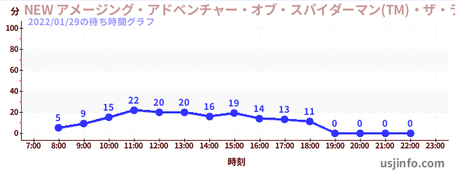 • NEW アメージング・アドベンチャー・オブ・スパイダーマン(TM)・ザ・ライド 4K3D$B$N(B2022年01月29日の待ち時間