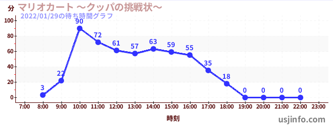 • マリオカート ~クッパの挑戦状~$B$N(B2022年01月29日の待ち時間
