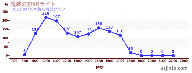• 鬼滅の刃XRライド$B$N(B2022年01月29日の待ち時間