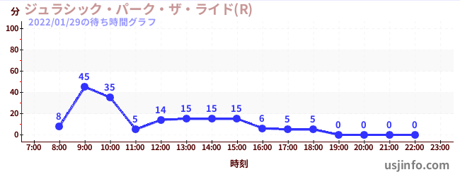 • ジュラシック・パーク・ザ・ライド(R)$B$N(B2022年01月29日の待ち時間