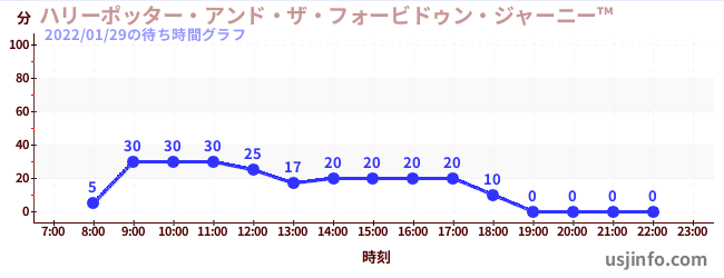 • ハリーポッター・アンド・ザ・フォービドゥン・ジャーニー™$B$N(B2022年01月29日の待ち時間