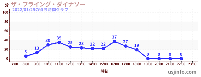 • ザ・フライング・ダイナソー$B$N(B2022年01月29日の待ち時間