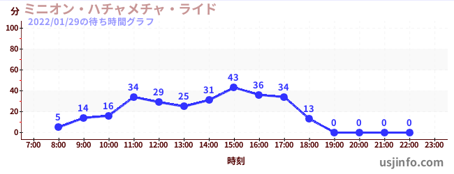 • ミニオン・ハチャメチャ・ライド$B$N(B2022年01月29日の待ち時間