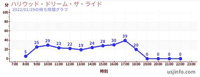 • ハリウッド・ドリーム・ザ・ライド$B$N(B2022年01月29日の待ち時間