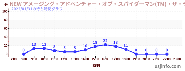 • NEW アメージング・アドベンチャー・オブ・スパイダーマン(TM)・ザ・ライド 4K3D$B$N(B2022年01月31日の待ち時間
