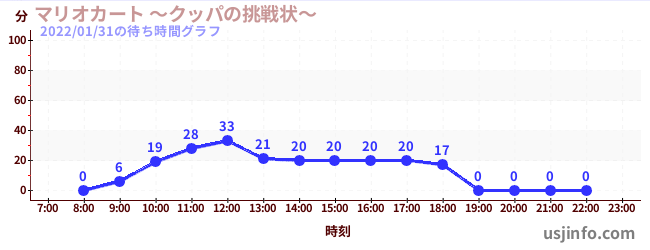 • マリオカート ~クッパの挑戦状~$B$N(B2022年01月31日の待ち時間