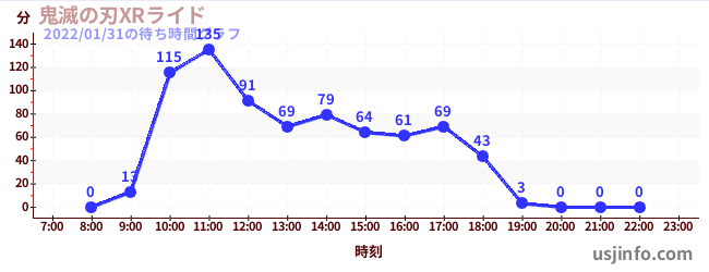 • 鬼滅の刃XRライド$B$N(B2022年01月31日の待ち時間