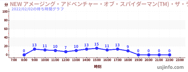 • NEW アメージング・アドベンチャー・オブ・スパイダーマン(TM)・ザ・ライド 4K3D$B$N(B2022年02月02日の待ち時間