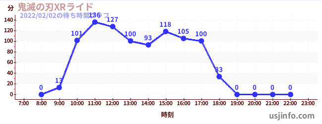 • 鬼滅の刃XRライド$B$N(B2022年02月02日の待ち時間