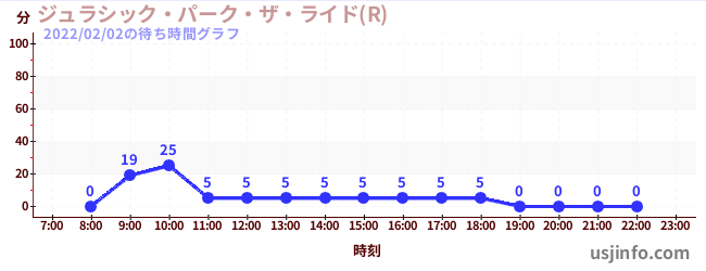 • ジュラシック・パーク・ザ・ライド(R)$B$N(B2022年02月02日の待ち時間