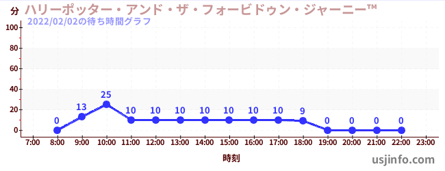 • ハリーポッター・アンド・ザ・フォービドゥン・ジャーニー™$B$N(B2022年02月02日の待ち時間