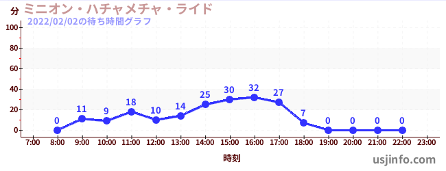 • ミニオン・ハチャメチャ・ライド$B$N(B2022年02月02日の待ち時間