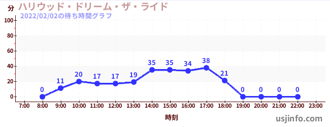 • ハリウッド・ドリーム・ザ・ライド〜バックドロップ〜$B$N(B2022年02月02日の待ち時間
