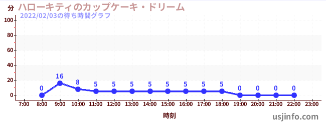 • ハローキティのカップケーキ・ドリーム$B$N(B2022年02月03日の待ち時間