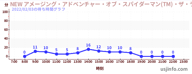 • NEW アメージング・アドベンチャー・オブ・スパイダーマン(TM)・ザ・ライド 4K3D$B$N(B2022年02月03日の待ち時間