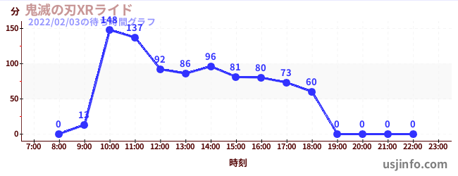• 鬼滅の刃XRライド$B$N(B2022年02月03日の待ち時間