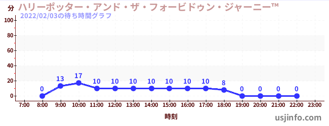 • ハリーポッター・アンド・ザ・フォービドゥン・ジャーニー™$B$N(B2022年02月03日の待ち時間