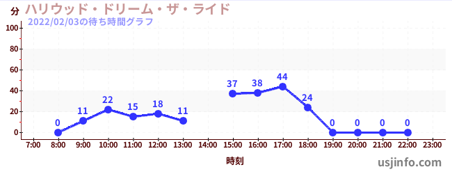 • ハリウッド・ドリーム・ザ・ライド〜バックドロップ〜$B$N(B2022年02月03日の待ち時間