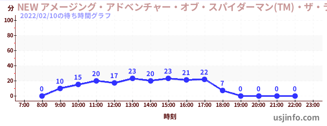 • NEW アメージング・アドベンチャー・オブ・スパイダーマン(TM)・ザ・ライド 4K3D$B$N(B2022年02月10日の待ち時間